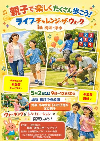 公開日:2026年03月27日イベント情報ライフ・チャレンジ・ザ・ウォーク in 梅坪・浄水開催日:2026年05月02日(土)