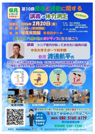 第10回健康と運動に関する講義と体力測定 開催日:2026年2月20日(金) 時間:9:40~受付開...