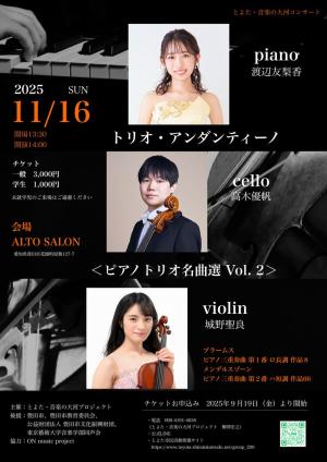 公開日:2025年09月18日とよた・音楽の大河コンサート/トリオ・アンダンティーノ ピアノトリオ名曲選 Vol.2開催日:2025年11月16日(日)