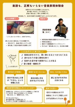 【小・中学生対象】楽譜も正解もいらない!音楽表現体験会